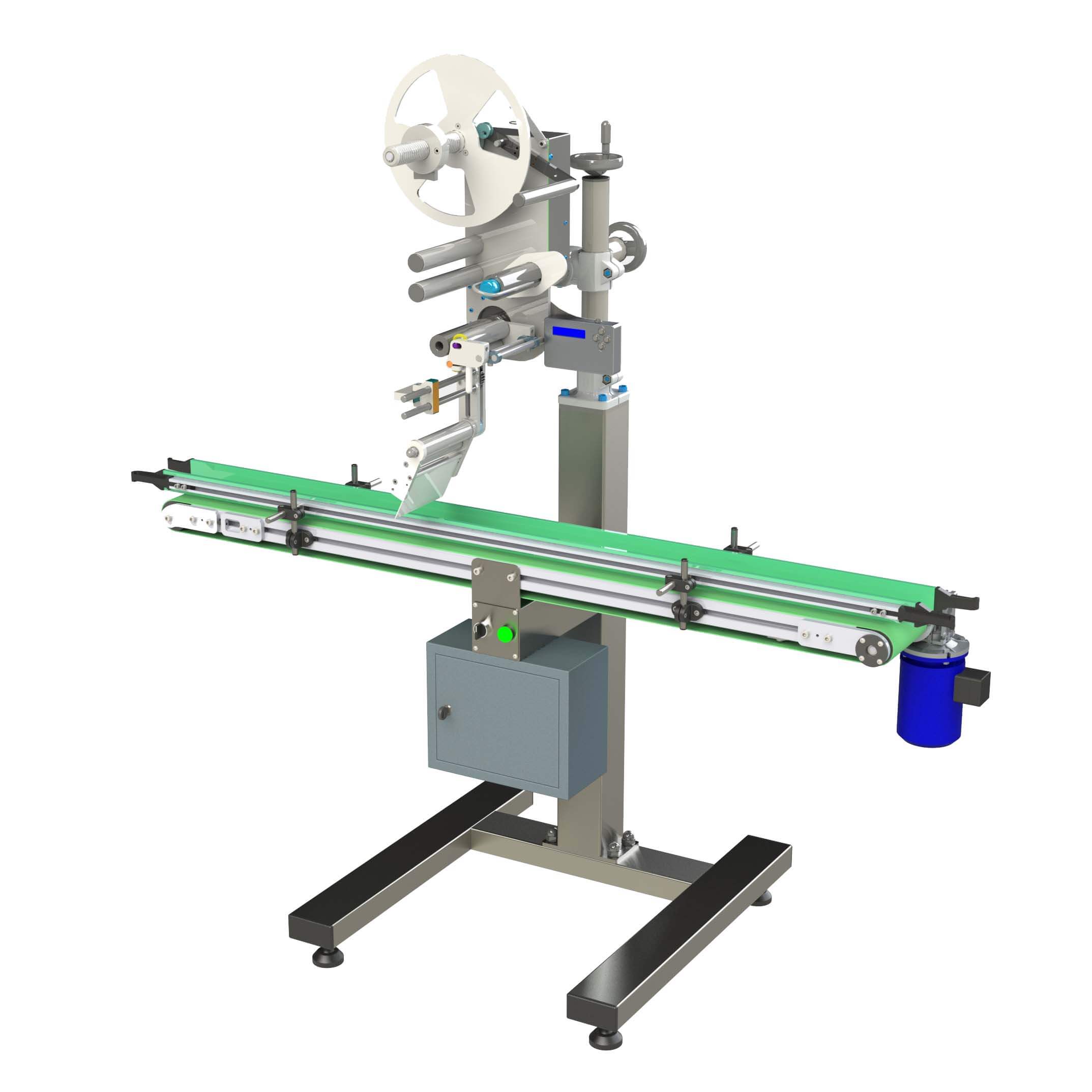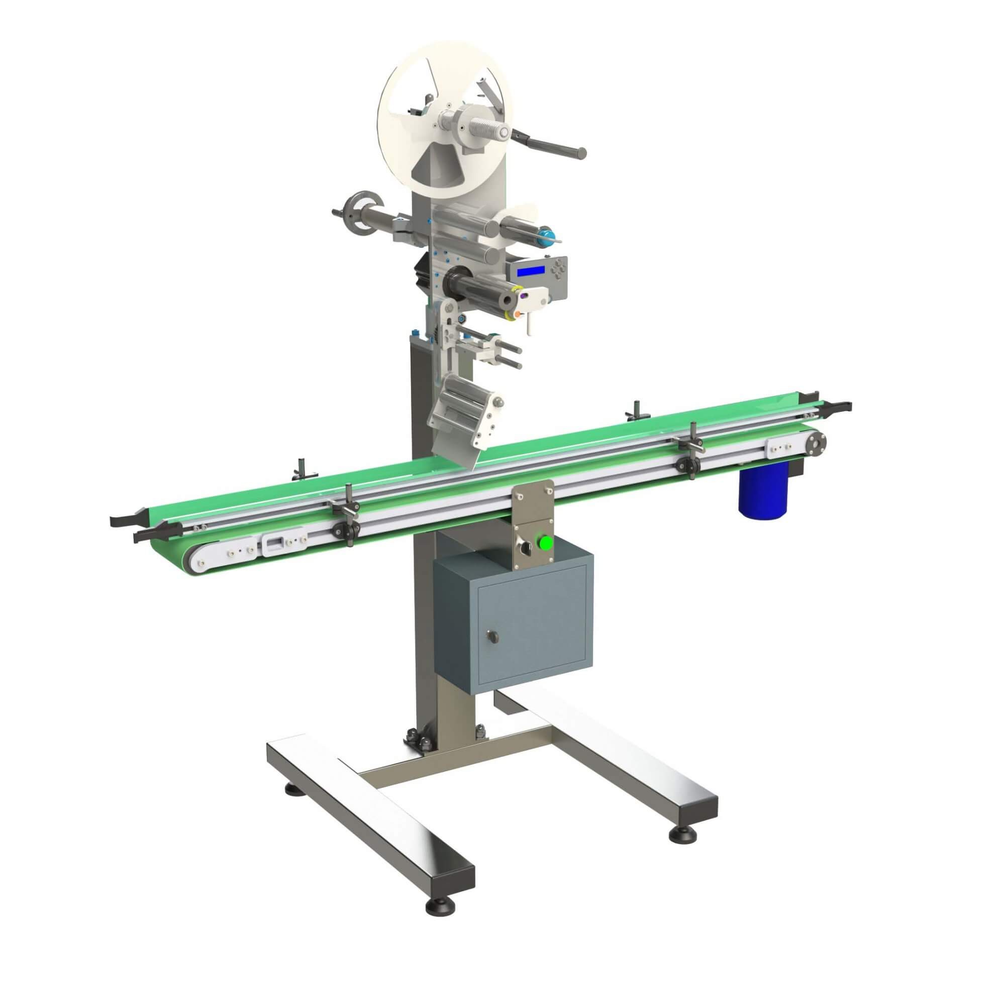 Этикетировочная машина Н-Э1-В предназначена для нанесения этикетки на верхнюю сторону продукта, перемещающегося по конвейеру.